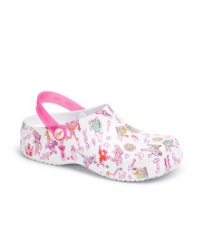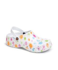 Le sabot hospitalier Dany combine confort et style avec une touche ludique, offrant un maintien parfait du pied grâce à sa bride arrière.